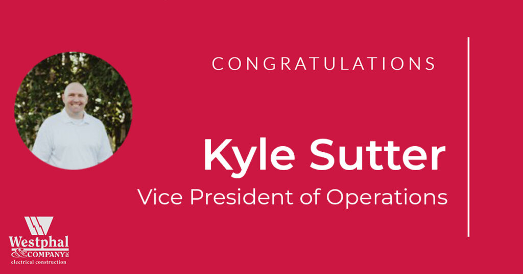 I am very pleased to announce that Kyle Sutter has been promoted to the position of Vice President of Operations. Kyle started his electrical apprenticeship with our Madison office on